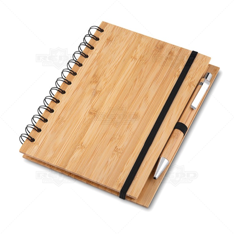 Descrição: Bloco de anotações personalizado produzido em bambu com capa dura. Possui elástico para fechamento, wire-o de metal, caneta esferográfica em bambu com acionamento por clik e 70 folhas pautadas de papel reciclado. Ideal para divulgar sua empresa em eventos corporativos, brindes personalizados e campanhas promocionais. - Fortaleza